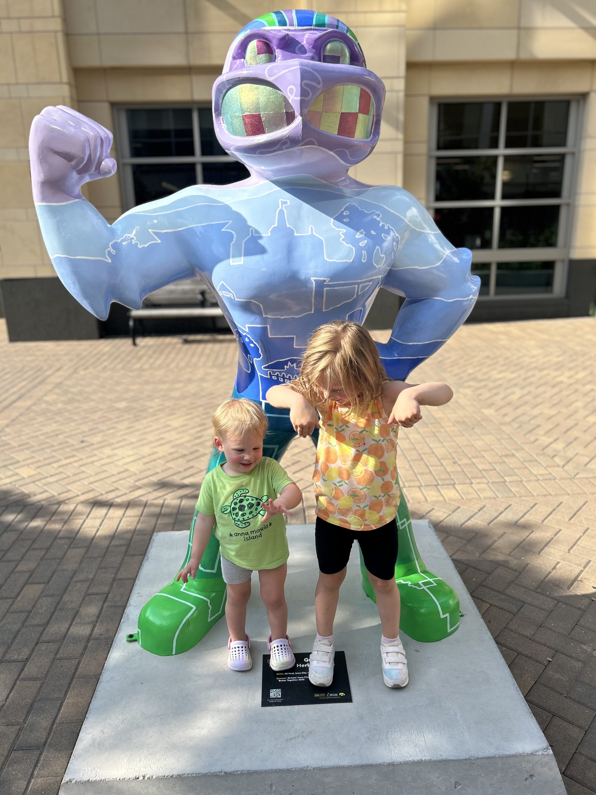 “Our town turns into a family-oriented haven in the summers. Think: farmers markets, arts and music festivals, and a summer block party. Last year, they put 100 Herkys (the Iowa mascot, pictured above) around town for a scavenger hunt, and built free outdoor pickleball courts. The downside? We don’t have any good Jewish delis. I would kill for a good bowl of matzo ball soup.” — Mara, Iowa City, Iowa